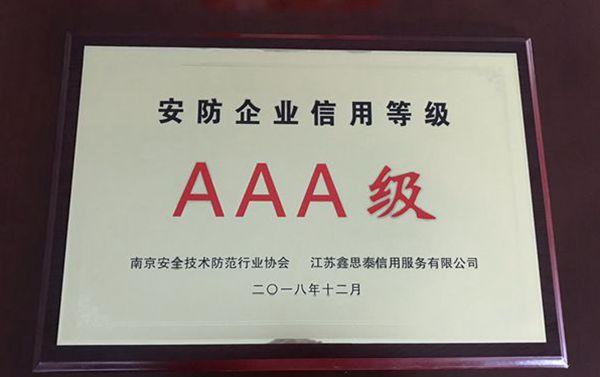 安防企業(yè)信用AAA級(jí)證書