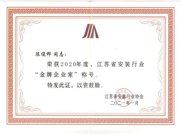金牌企業(yè)家證書
